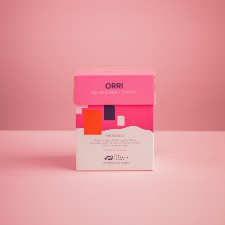 Orri se caracteriza por ser ligera, etérea y sensual. Con un aroma floral con un toque afrutado, está compuesta por Té blanco Silver Needle, regaliz, hibisco, uvas pasas, pétalos de rosa, arándanos, grosellas, aroma y bayas de sauco.