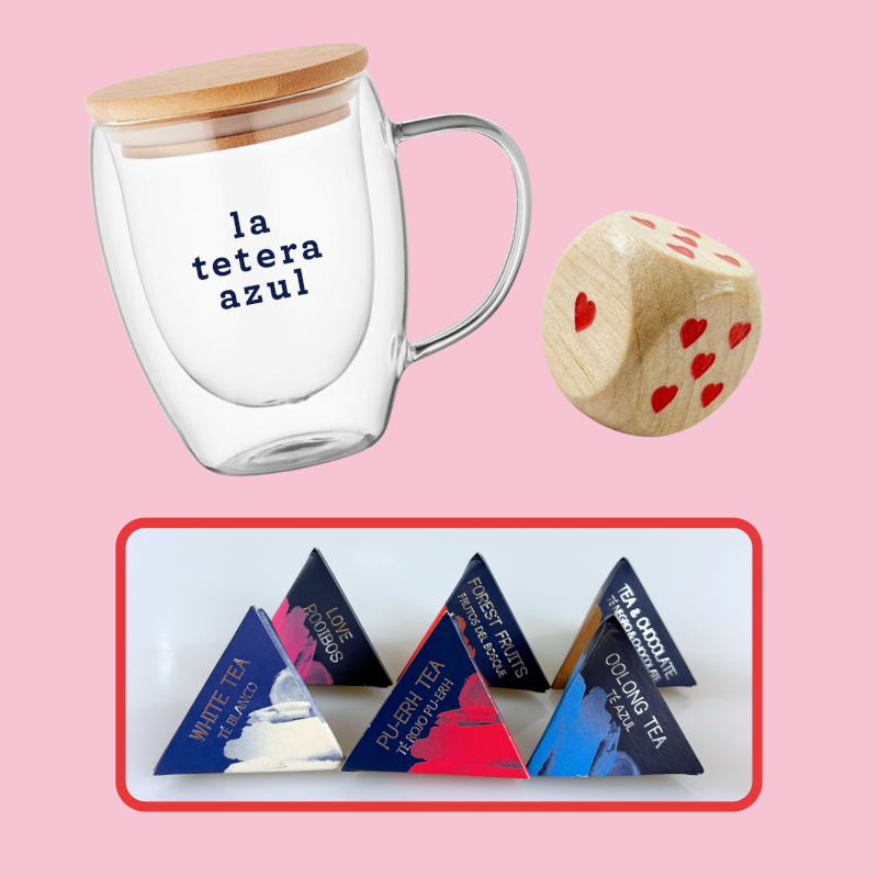 AMAR-TÉ es un pack regalo de té diseñado para disfrutar sin prisas, compartir momentos especiales y convertir una pausa en una experiencia para conectar. Un pack que une infusiones cuidadosamente seleccionadas con un juego sencillo: tira el dado, descubre la acción en la tarjeta y deja que el momento fluya acompañado de una taza de té.